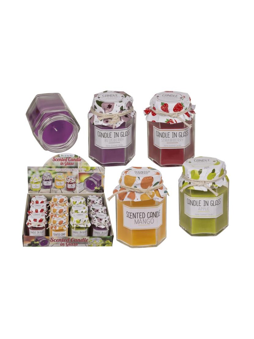 ΚΕΡΙ ΑΡΩΜΑΤΙΚΟ ΦΡΟΥΤΩΝ ΣΕ ΒΑΖΑΚΙ (5,5 Χ 5,5 Χ 8CM), 4 ΑΡΩΜΑΤΑ ΣΤΑΝΤ 12 ΤΕΜΑΧΙΩΝ BLUE GIFTS