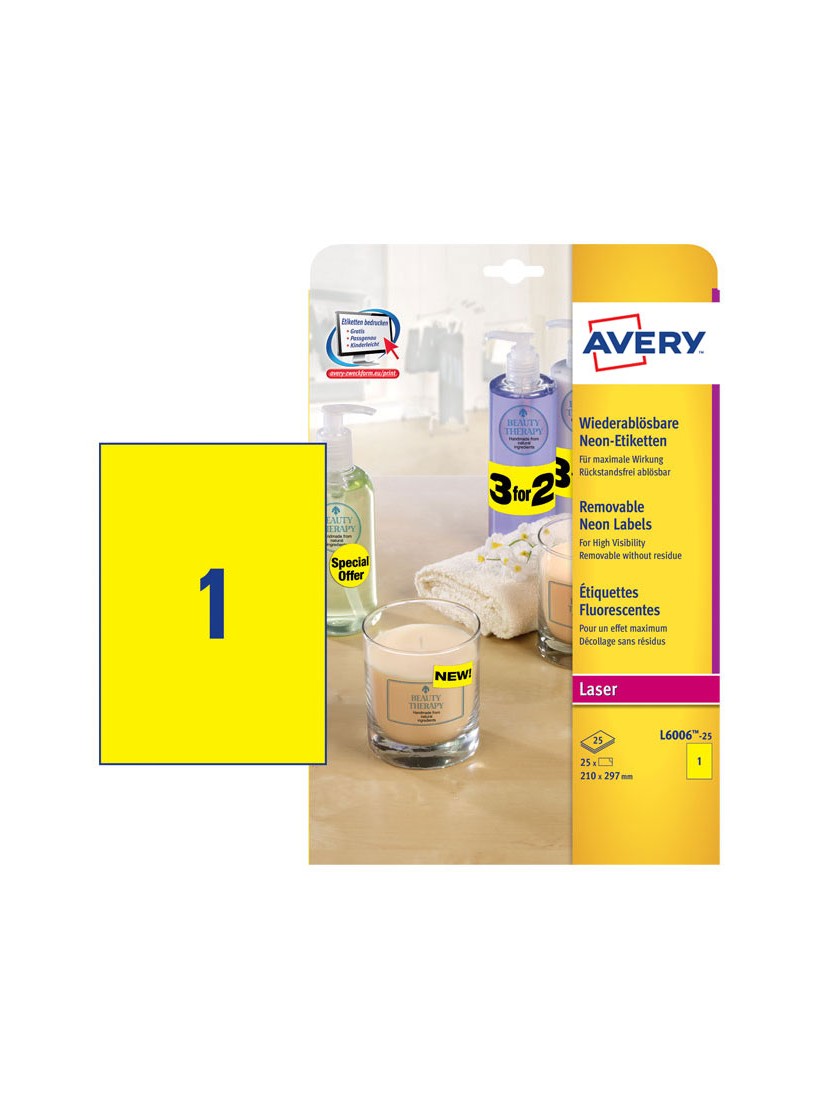 *ΕΤΙΚΕΤΕΣ ΝΕΟΝ ΚΙΤΡΙΝΕΣ LASER 210X297 1 ΦΥΛΛΟ ΠΑΚΕΤΟ 25 ΦΥΛΛΩΝ AVERY