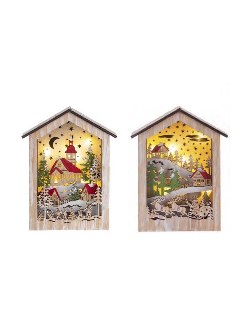 ΞΥΛΙΝΑ ΔΙΑΚΟΣΜΗΤΙΚΑ ΧΡΙΣΤΟΥΓΕΝΝΙΑΤΙΚΑ ΣΠΙΤΑΚΙΑ ΜΕ ΦΩΣ 17 Χ 5 Χ 23CM, ΣΕΤ 2 ΤΕΜΑΧΙΩΝ GLOREX